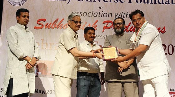 Actress (Gadar) Ameesha Patel honored Agilo Foundation President Vijay Mudgal with "Leader of India" Award for women skill development work under the project "She the Change" run by Agilo Foundation.